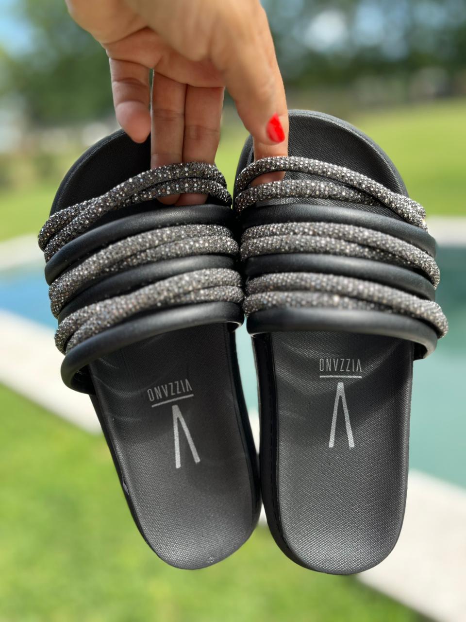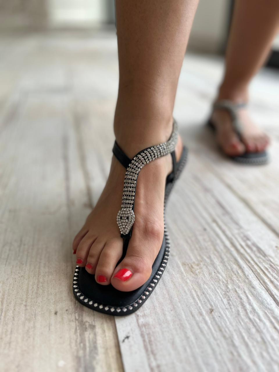 Sandalia 78000 – Similgamuza Negra con Fantasía Plateada