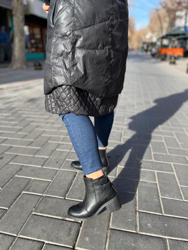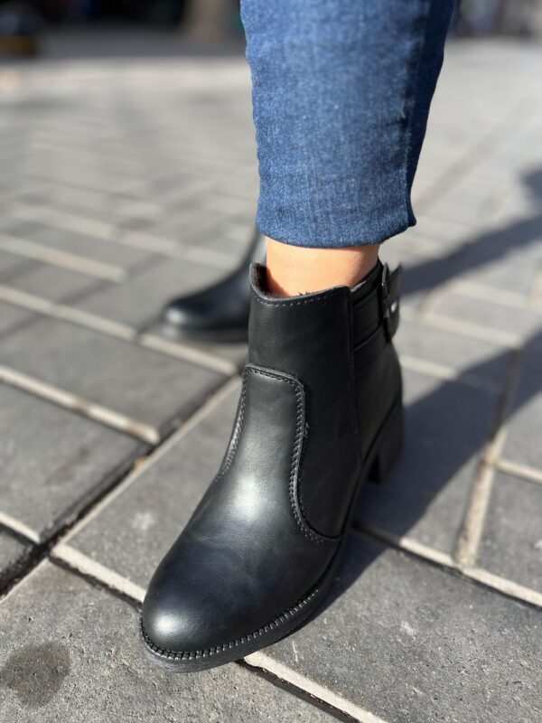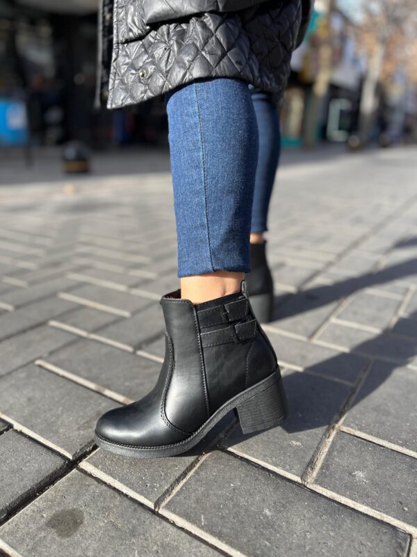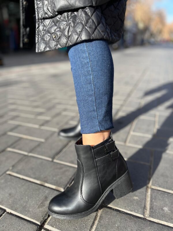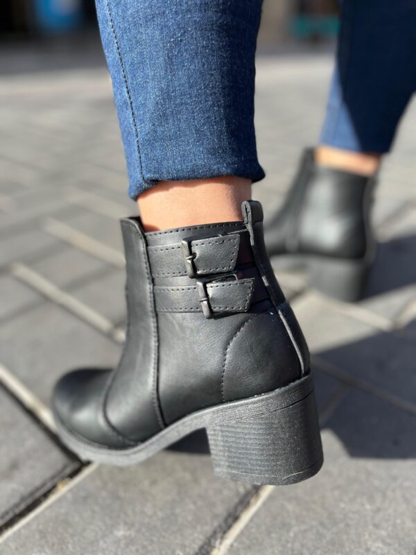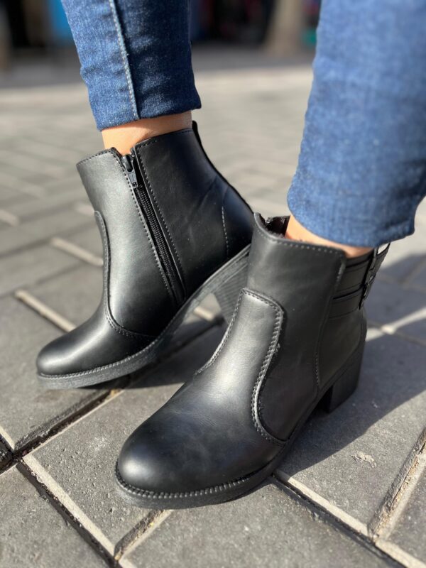 Botita simil cuero color negro punta redonda. Horma normal. Cierre lateral interno.