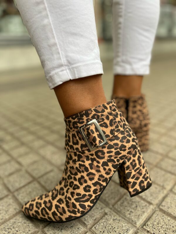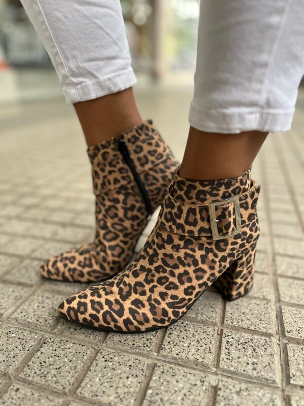 La Botita Animal Print 1817 es la combinación perfecta de carácter y confort. Confeccionada en material tipo cuero de alta calidad, presenta un atrevido estampado animal que realza tu outfit con personalidad. Gaby Show Zapatos