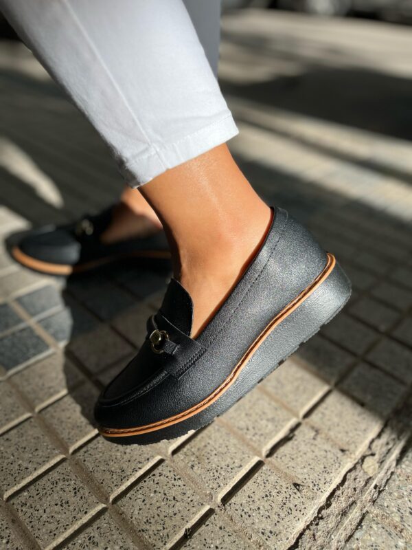El Mocasín Gaby es un calzado que combina elegancia y confort en un diseño atemporal. Confeccionado en material tipo cuero de alta calidad, presenta un diseño clásico con detalles que aportan un toque sofisticado. Su suela antideslizante y plantilla acolchonada brindan estabilidad y comodidad durante todo el día. Ideal para quienes buscan un calzado versátil que complemente su estilo personal con un toque de distinción.