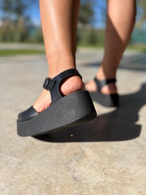 Su base media tipo góndola aporta altura justa sin renunciar a la comodidad, garantizando un andar seguro y estable. Además, cuenta con pulsera ajustable al tobillo para mayor firmeza, ideal para quienes buscan un calzado cómodo y elegante a la vez.