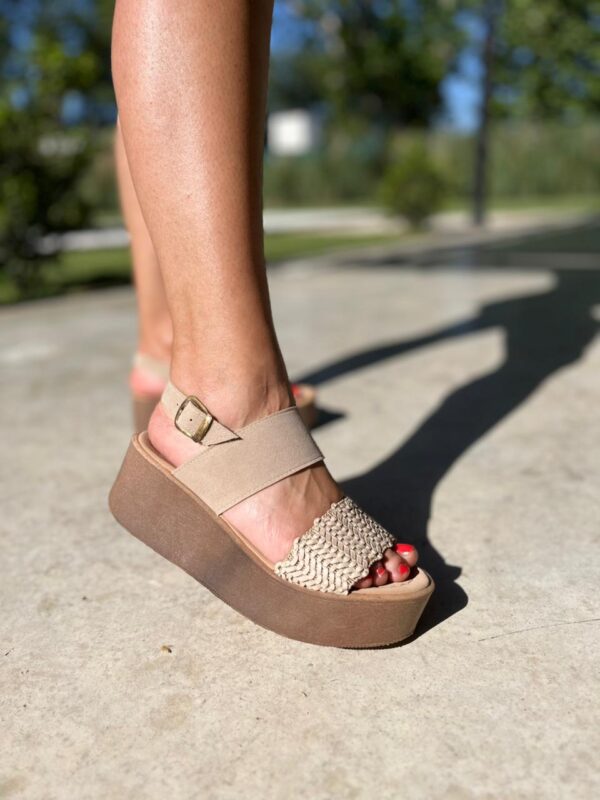 Cuenta con tira delantera ancha, pulsera al tobillo con hebilla regulable y base entera, ofreciendo estabilidad y confort en cada paso. Ideal para quienes buscan una sandalia cómoda, moderna y fácil de combinar.