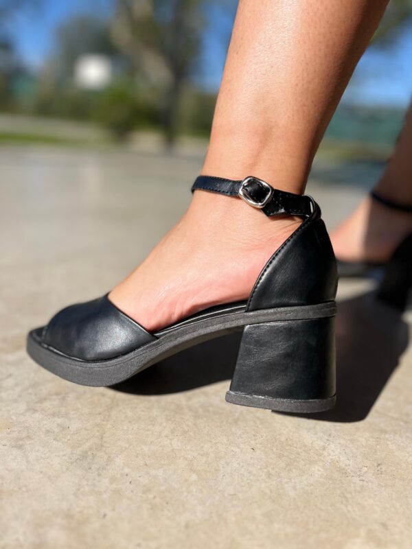 Su confección en material simil cuero de fácil mantenimiento le otorga un acabado clásico y duradero, mientras que la pulsera ajustable al tobillo brinda seguridad y firmeza en cada paso. Además, la talonera cerrada aporta mayor estabilidad y un calce seguro, adaptándose a distintas ocasiones de uso. La plantilla es mullida brindándole confort al calce y andar.