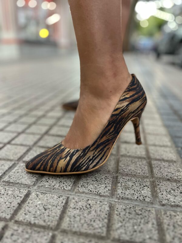 El Stiletto Cuero Atigrado es un calzado que fusiona la elegancia clásica con un toque audaz y moderno. Confeccionado en cuero de alta calidad con un estampado animal print, este stiletto ofrece un diseño sofisticado y versátil. Su tacón alto estiliza la figura, mientras que su suela antideslizante brinda estabilidad y confort durante todo el día. Ideal para quienes buscan un calzado que complemente su estilo personal con un toque de distinción.