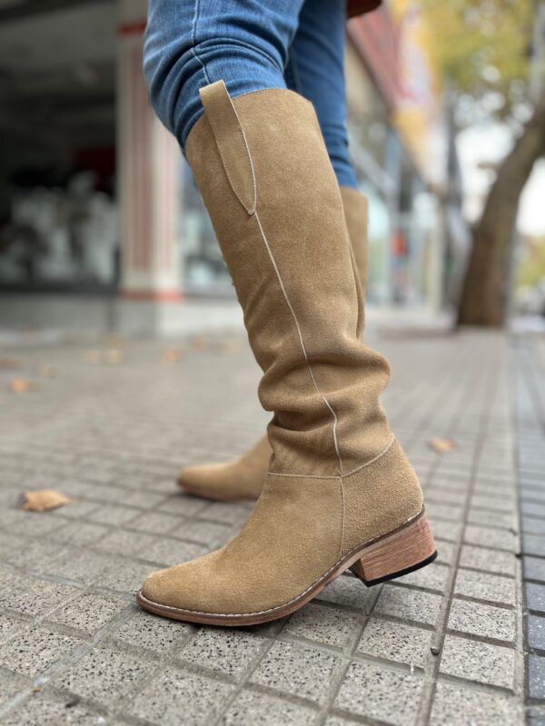 La Texana Cuero Gamuzado Larga es una pieza de calzado que fusiona la tradición del estilo texano con un diseño contemporáneo y elegante. Confeccionada en cuero gamuzado de alta calidad, presenta una caña alta que aporta sofisticación y estilo. Su suela antideslizante y tacón cómodo garantizan estabilidad y confort durante todo el día. Ideal para quienes buscan un calzado versátil que complemente su estilo personal con un toque de distinción.