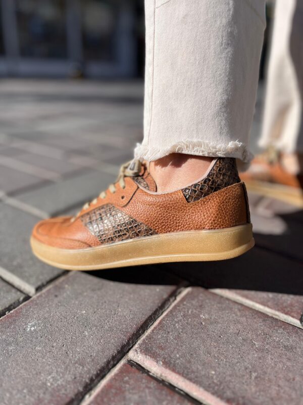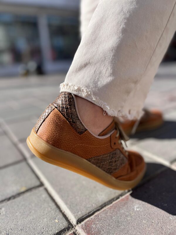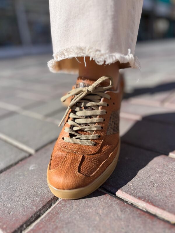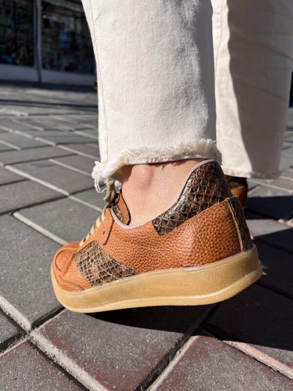La Zapatilla Matera Cuero combina estilo artesanal y comodidad moderna. Hecha en cuero natural color oxido combinado con texturas, es ideal para el uso diario, aportando un toque sofisticado a tus looks casuales o urbanos.