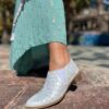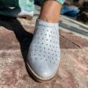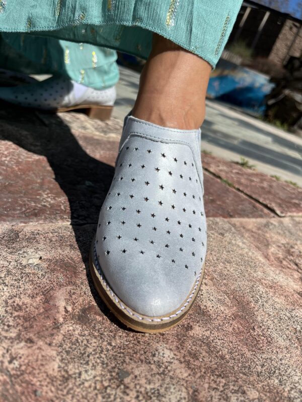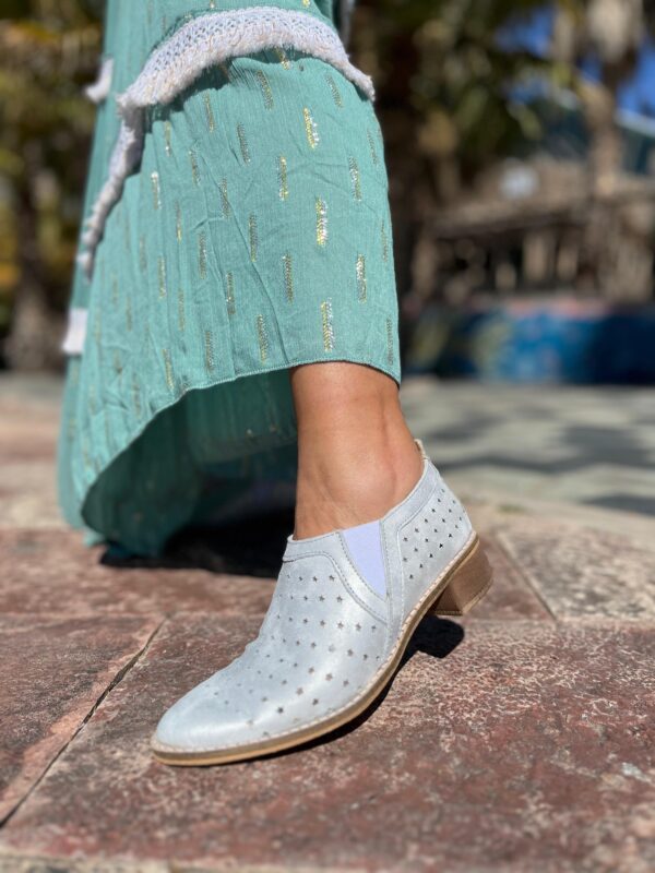 El Zapato Sally Cuero aluminio es la opción perfecta para quienes buscan comodidad, frescura y diseño único. Su calado en forma de estrellas le da un toque moderno y femenino, ideal para usar en cualquier ocasión.